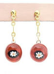 オレンジのガラスにお花模様のピアス♪