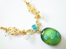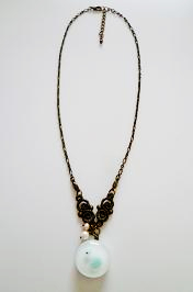 このネックレスは、ホワイトにクリアーを被せたガラスの上に模様が付いているので、模様が浮いているように見えます!