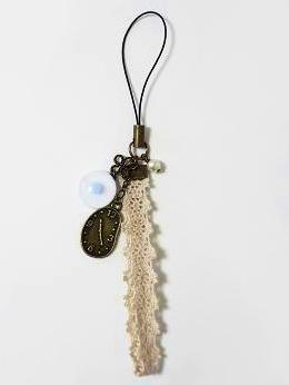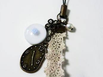 時計のチャーム付きレースのストラップ☆不思議の国のアリスをイメージしてみました(^u^)/